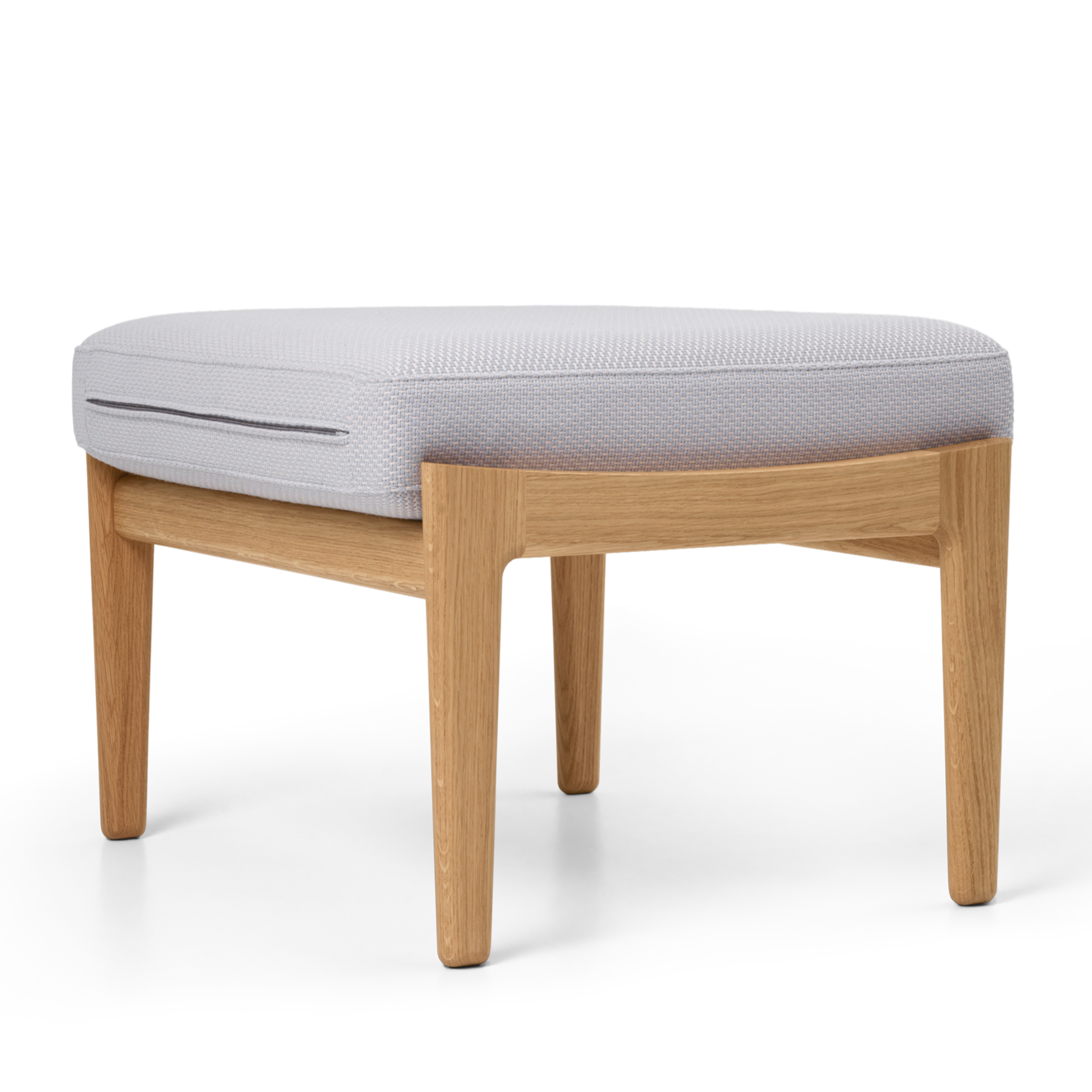 Rooted in Hans J. Wegner’s hallmark vernacular of rigorous carpentry details and straightforward shapes, the CH290 Series is a versatile collection of lounge furniture, featuring visible solid oak frames softened by elegant upholstery. Designed in 1962 as part of the CH290 Series, the CH290F Footstool offers a relaxed versatility, ideal for use in conjunction with furniture from the same series or with the wider Carl Hansen & Søn collection. The Footstool features a FSC™-certified oak frame with opposing raised sides which embrace a carefully upholstered seat cushion in fabric or leather.